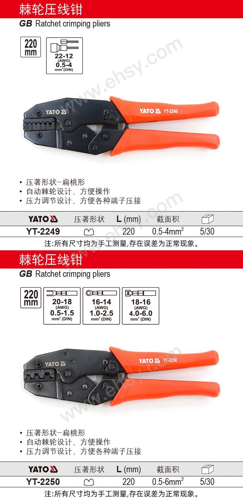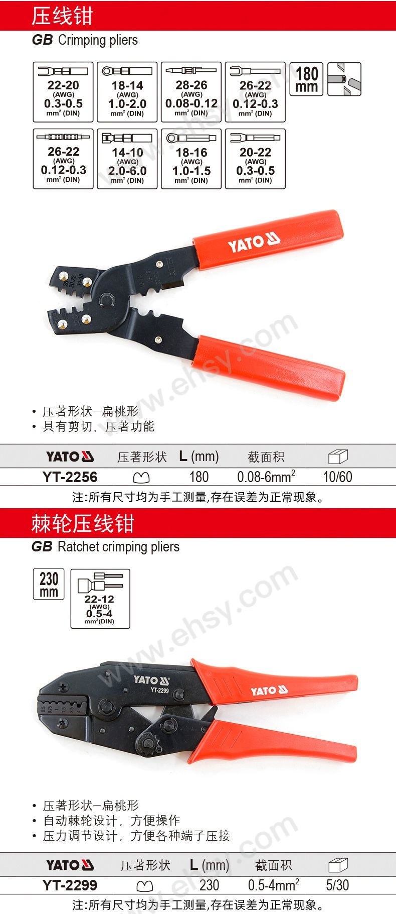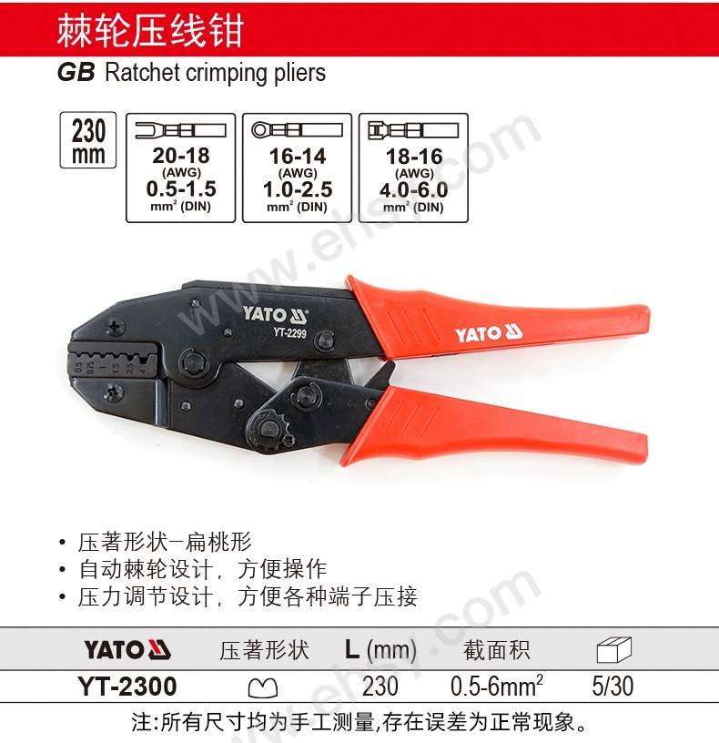 易爾拓/YATO 高檔壓線鉗,YT-2256 0.08-6.0mm2,180mm 售賣規(guī)格:1把