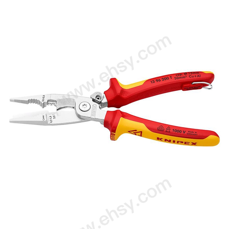 凱尼派克/KNIPEX 絕緣電工裝配鉗(手柄帶復(fù)位彈簧)(帶安全繩扣),13 96 200 T 200mm 售賣規(guī)格:1把
