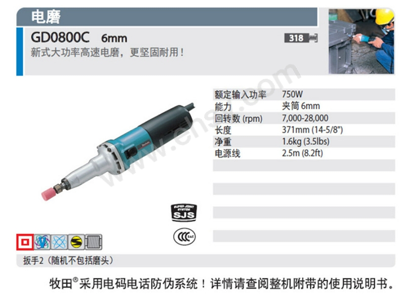 牧田/makita 電磨直磨機(jī)直向砂輪機(jī),GD0800C 售賣(mài)規(guī)格:1臺(tái)